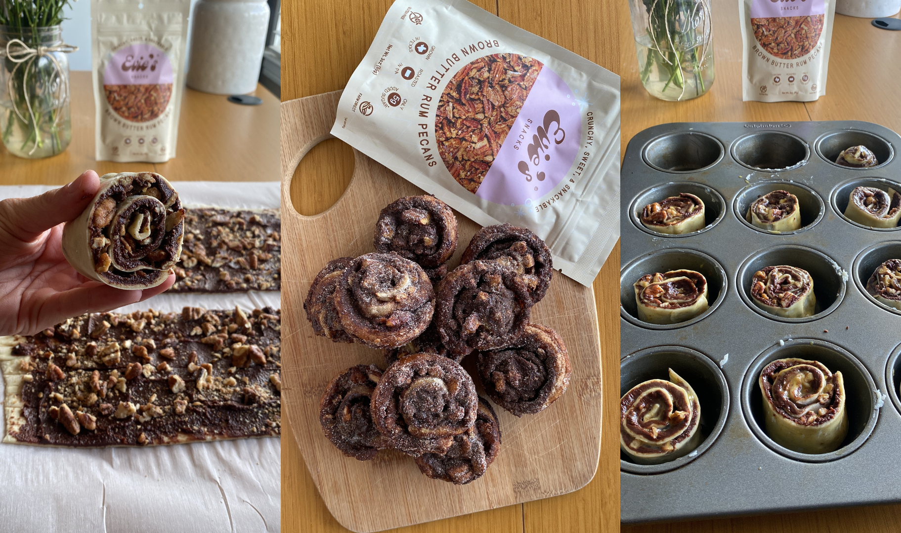 - 1 ½ cupĀ Evieās Snacks Raw, OrganicĀ Pecans (chopped) *Save about ½ cup whole pecans for the topĀ