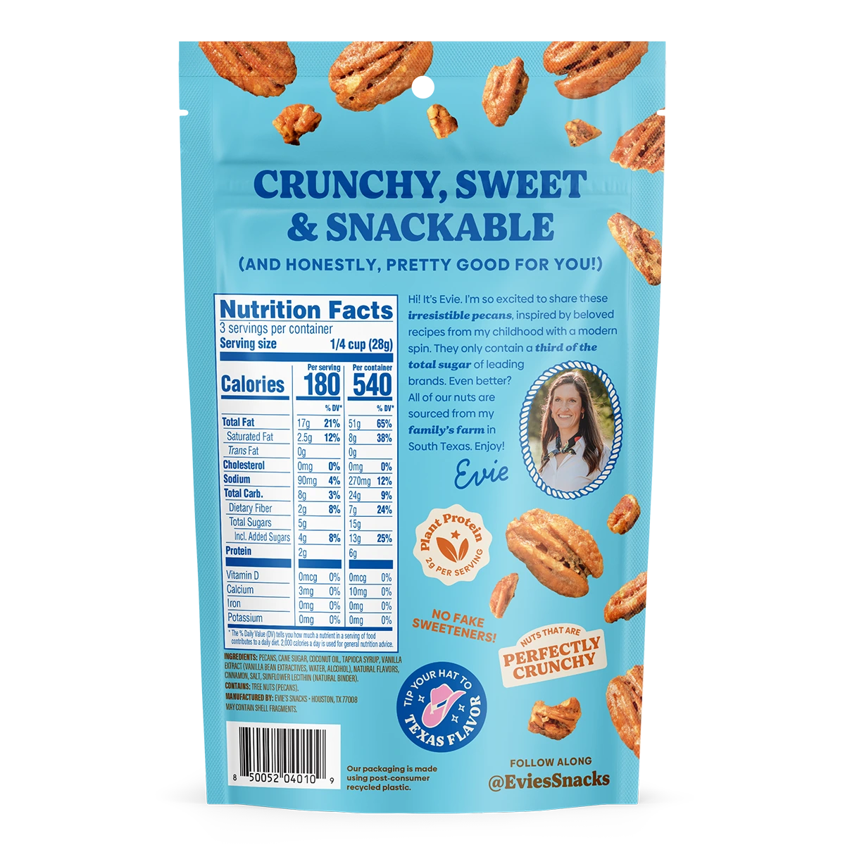 Pecans, cane sugar, coconut oil, tapioca syrup, natural flavors, cinnamon, salt, sunflower lecithin.